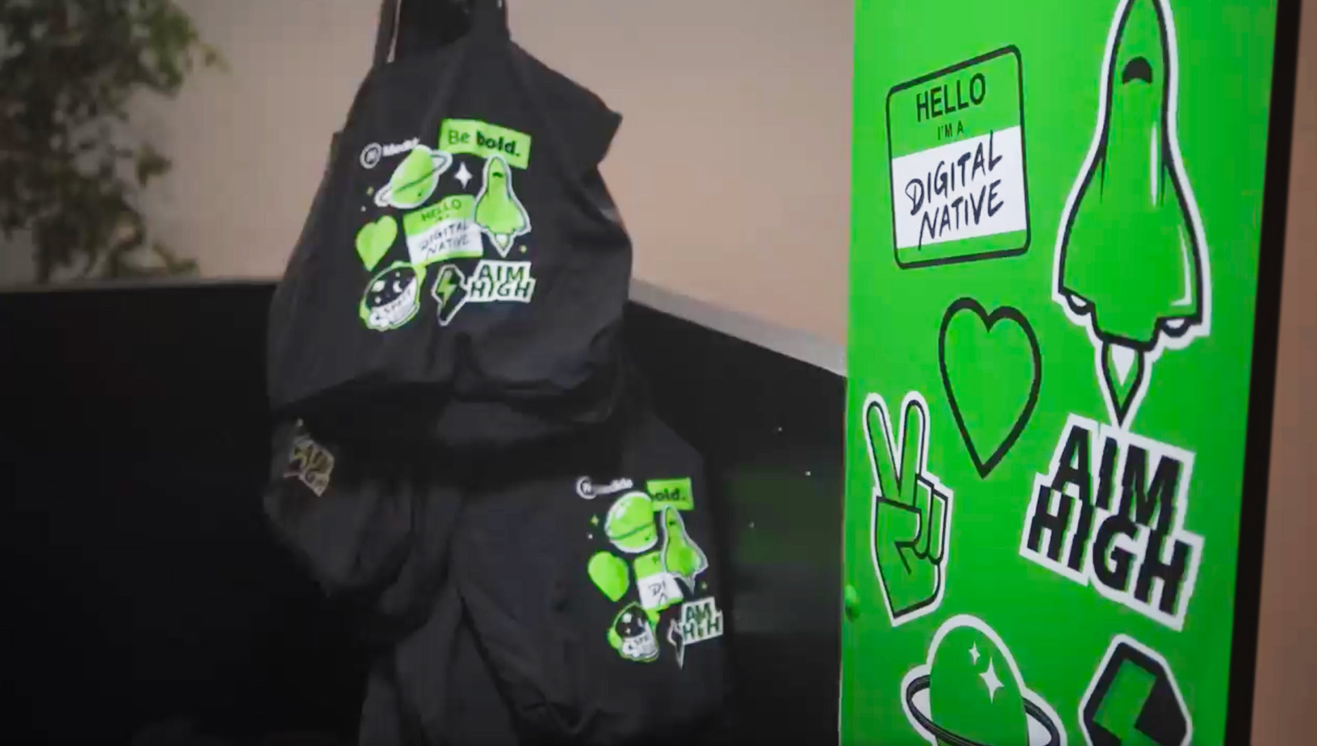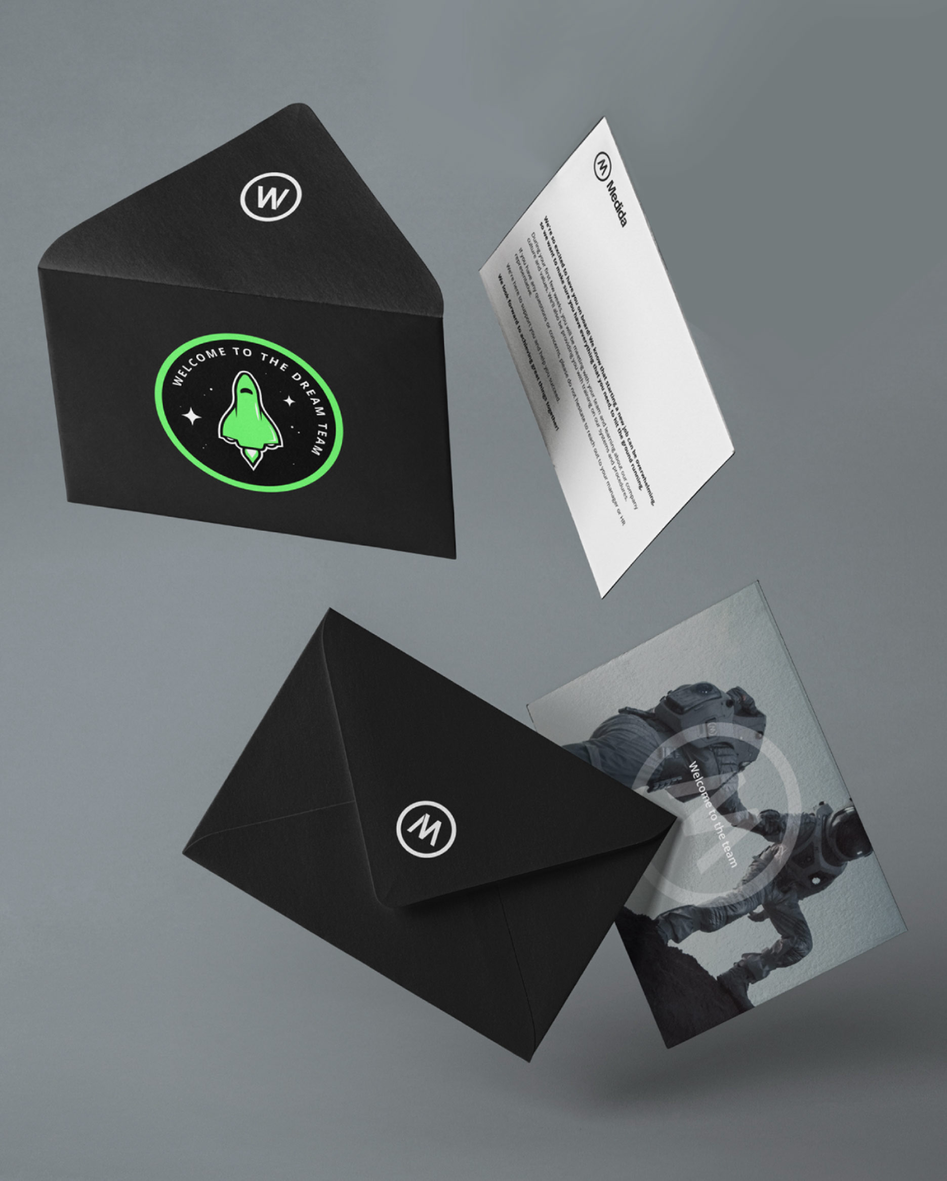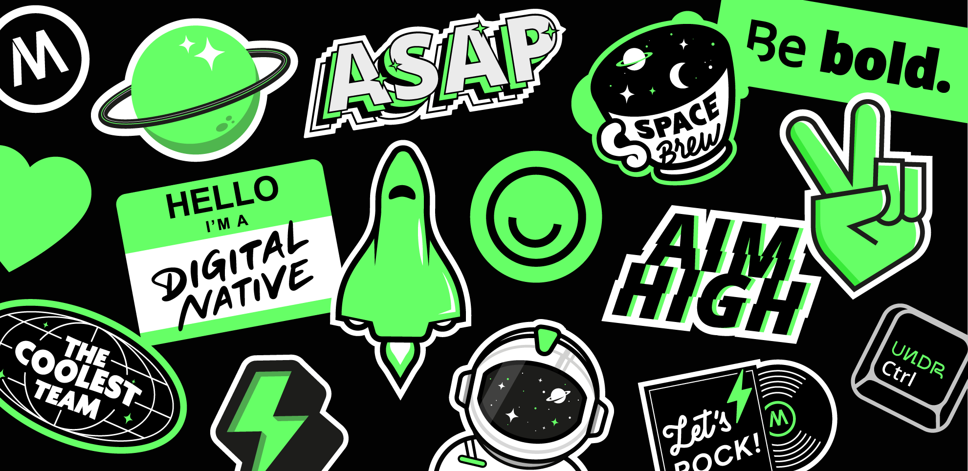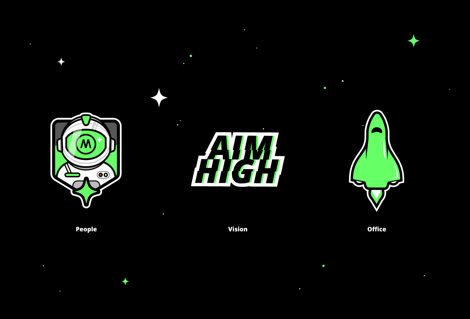 So my concept started focusing on a few ideas, starting with the green neon color that reminds me to technology and also space, following with the employees, young people aiming high, fresh and wanting to reach the highest, this reminded me of the figure of an astronaut.