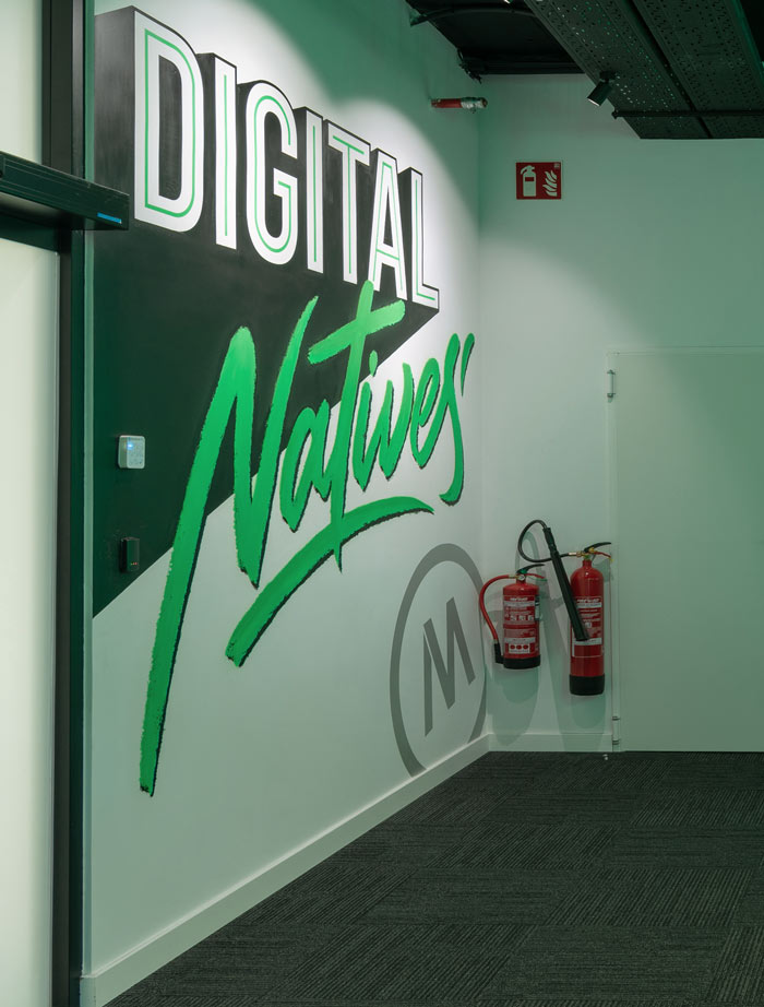 To make the space unique I thought differently and I used not just the walls but also the floor or columns and played around with different materials and elements like spray paint, rugs, led screens or neon lights.