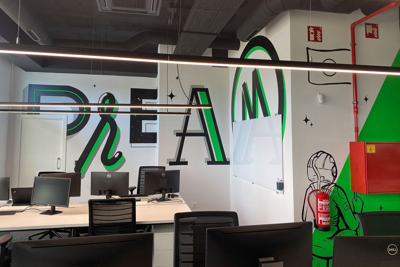 So that’s why I’ve decided to create an office like if it were a spaceship, but not a classic one, with different and playful elements like fun stickers, murals/graffitis, illustrations, planet images and more.