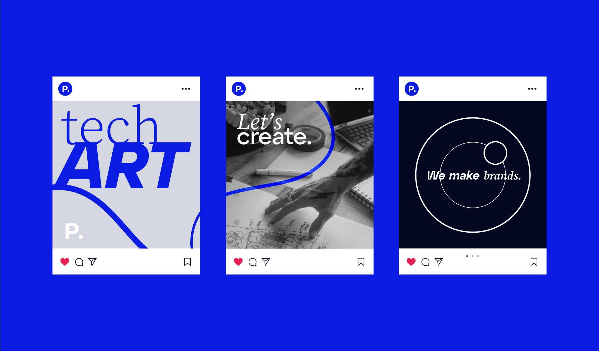 Apart from that, the use of straight/geometric shapes representing the digital part of the company, connected with curved/organic shapes representing the human and creative part of the agency.