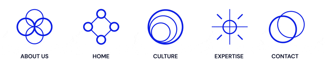 Apart from that, the use of straight/geometric shapes representing the digital part of the company, connected with curved/organic shapes representing the human and creative part of the agency.