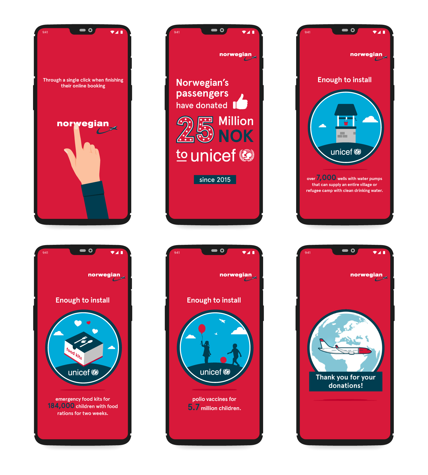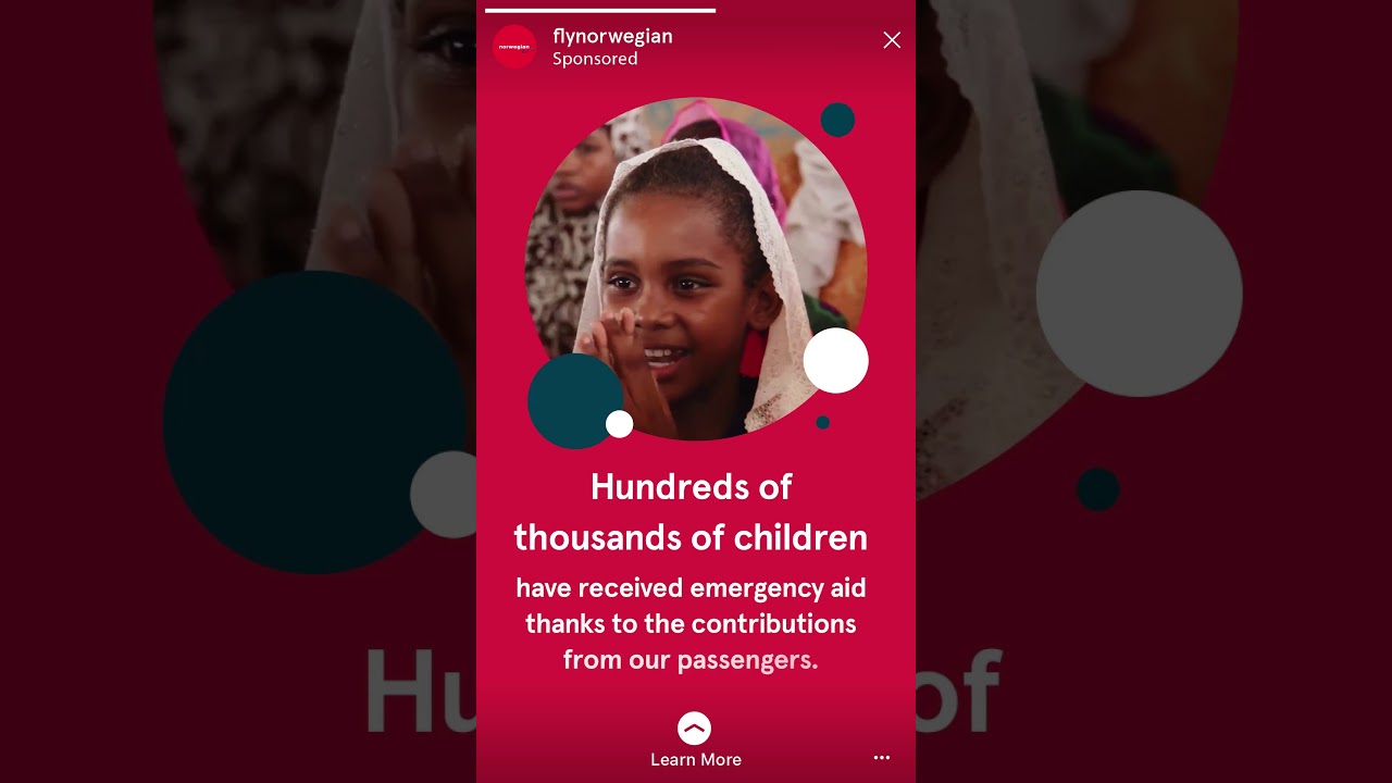 Art direction and resolution of the graphics and motion. Two Norwegian campaigns for social media where we can see the partnership between Norwegian Airlines and UNICEF, escalated in 2014 with the maiden voyage of their first “Fill a Plane” program. Norwegian and UNICEF boast that they fill every inch of a 737 Dreamliner with humanitarian aid. This humanitarian aid includes medical supplies, medication, and education supplies.